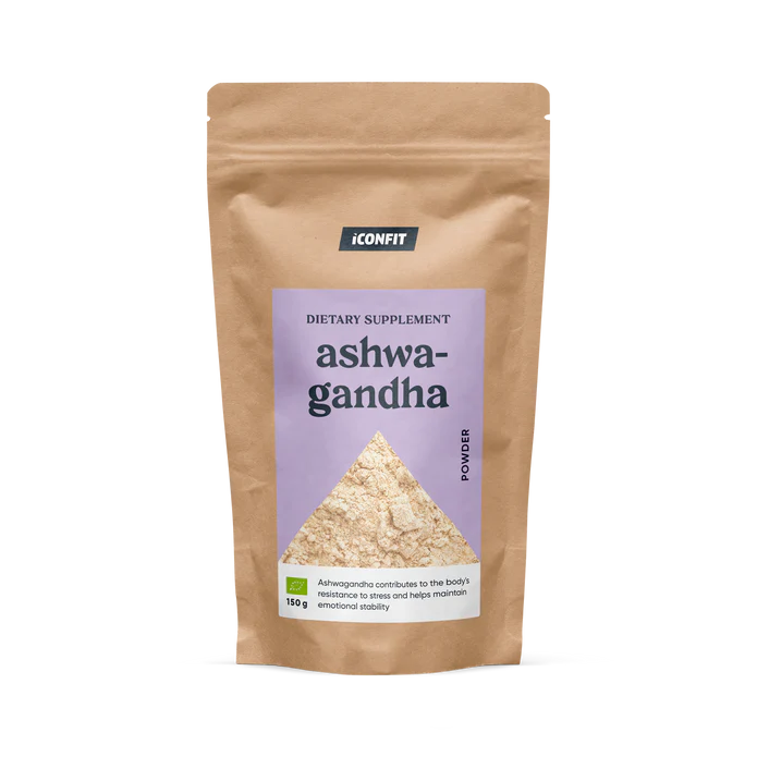 ICONFIT mahe Ashwagandha sisaldab palju kiudaineid, aitab kaasa organismi stressitaluvusele ja emotsionaalse stabiilsuse säilimisele.